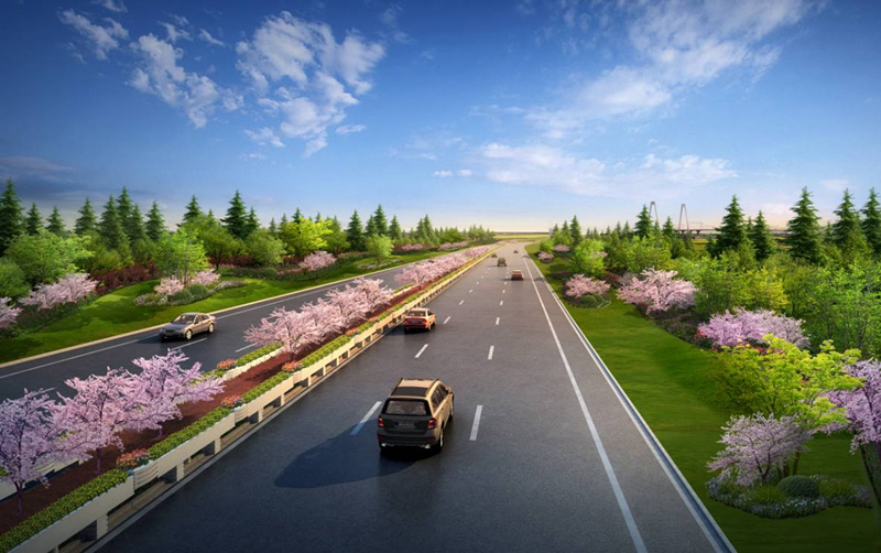 椒江区“两口两路一都”城市形象提升 溢彩迎宾段透视效果图(台金高速出口段)