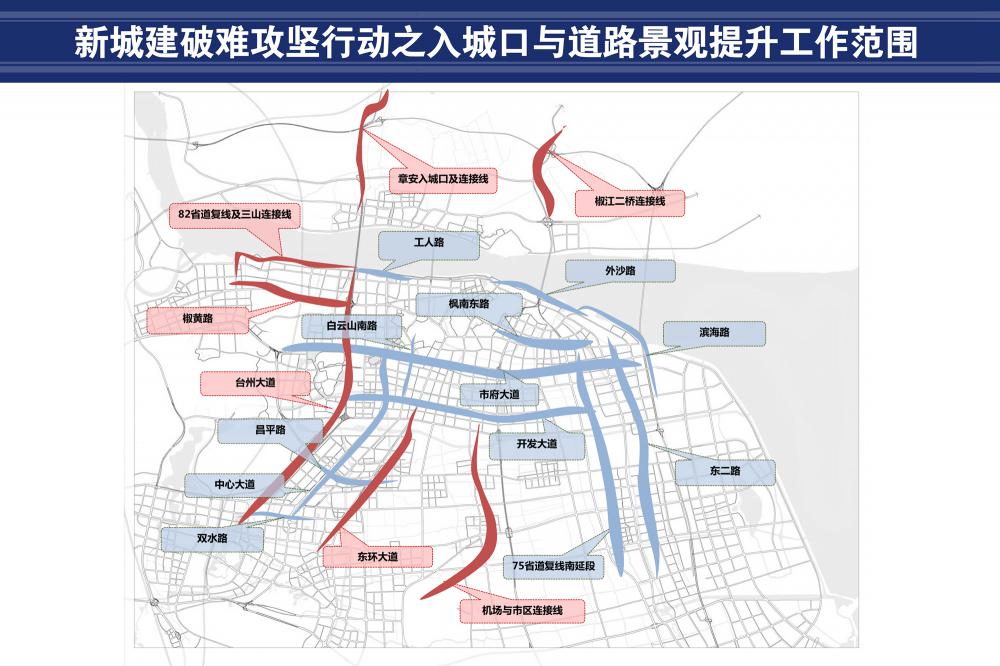 椒江区“两口两路一都”城市形象提升 新城建破难攻坚行动之入城口与道路景观提升工作范围